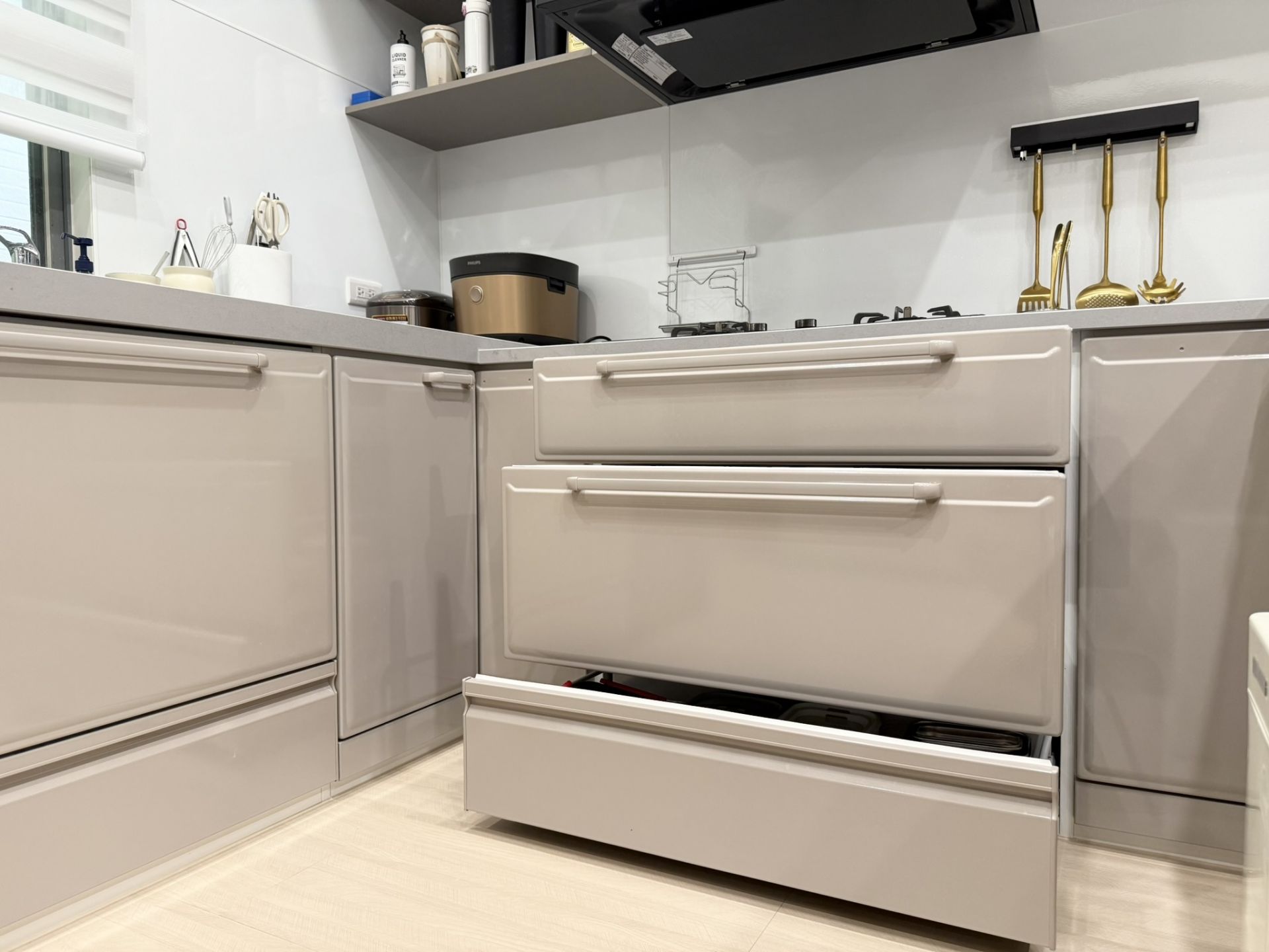 和一般貼皮或木作廚具相比,日式廚具的琺瑯材質 更加耐用: