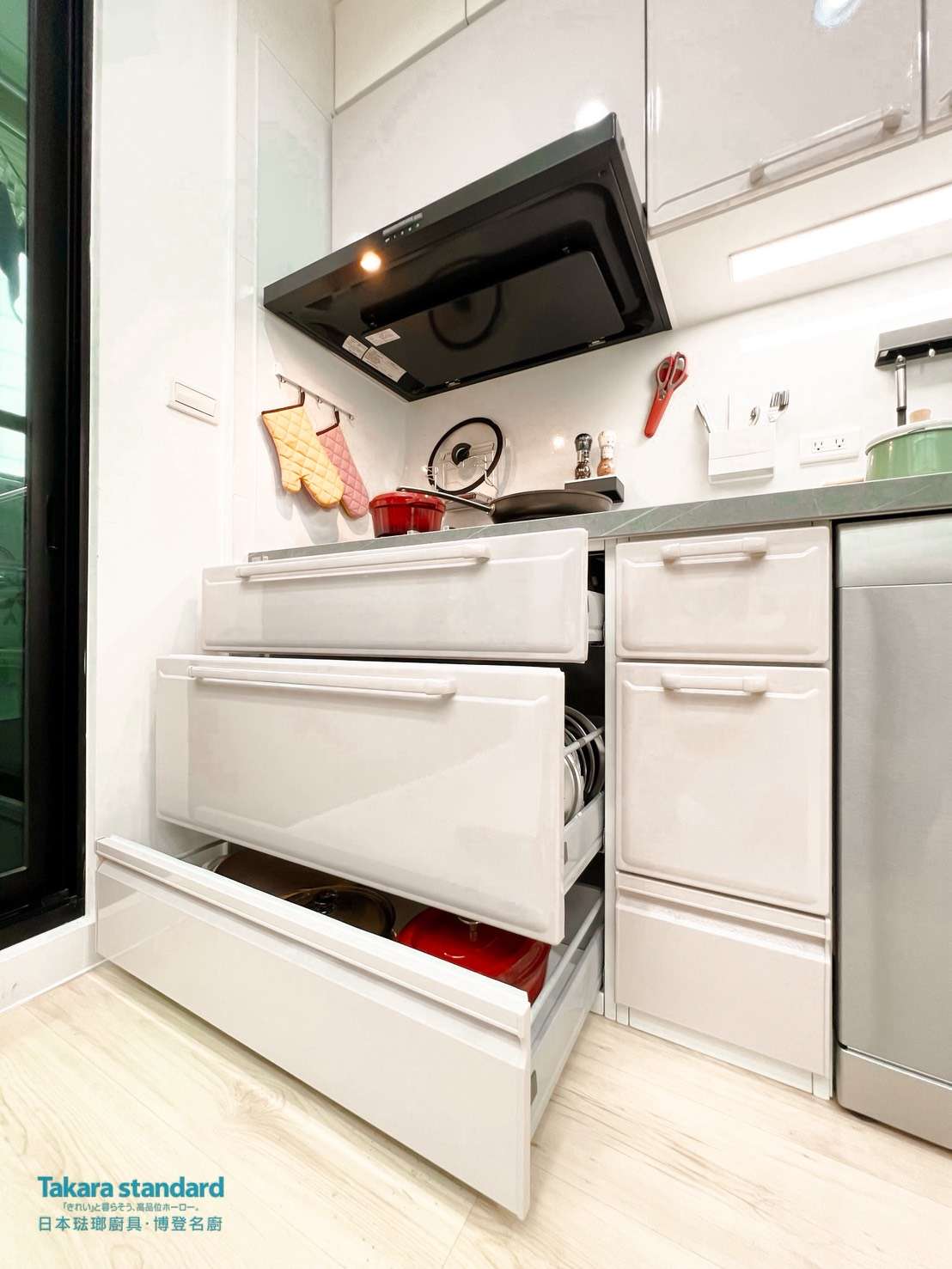 TAKARA抽油煙機是TAKARA琺瑯廚具選配中必選之一,抽油煙機直接接觸油煙的地方本身也是琺瑯的材質