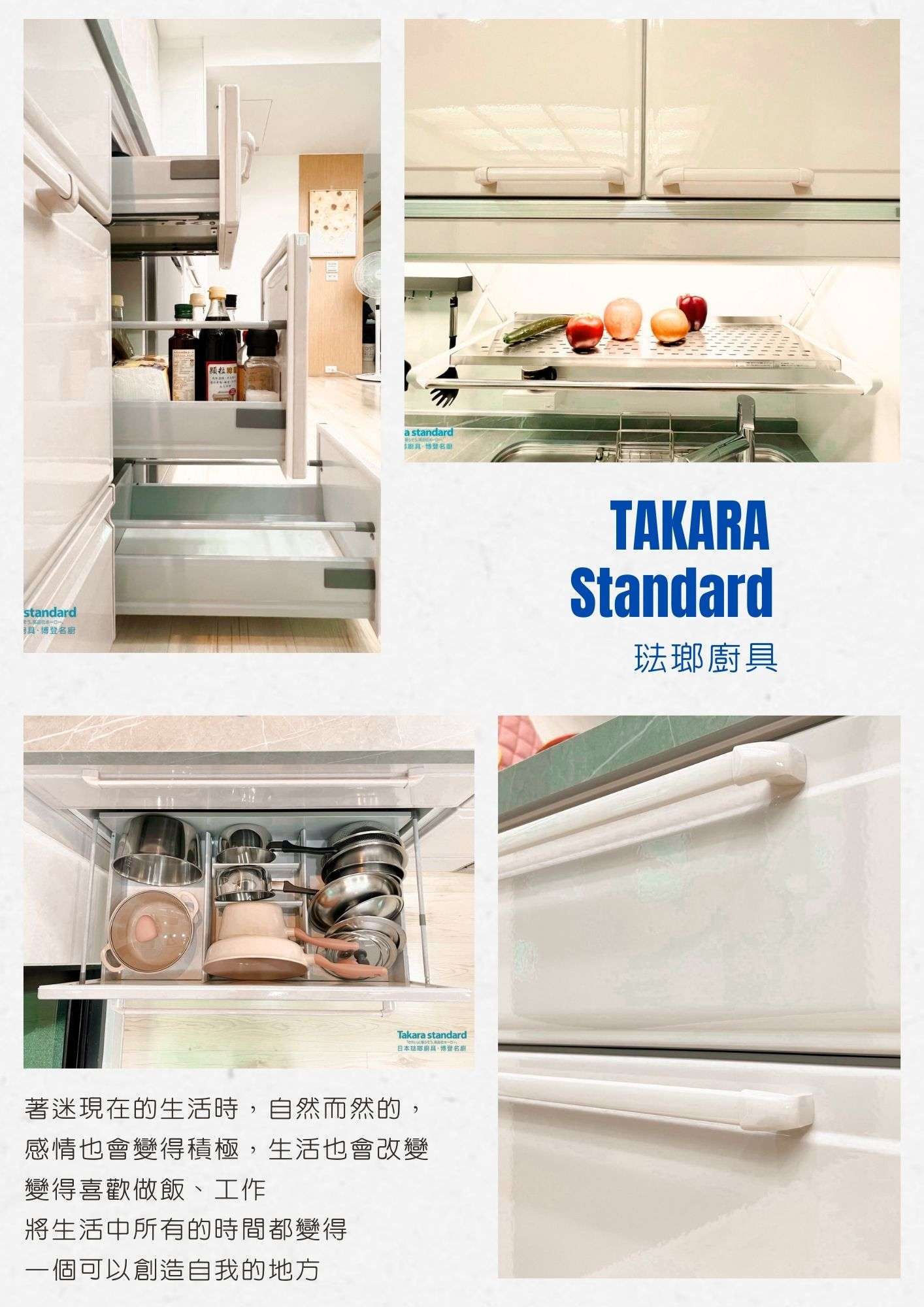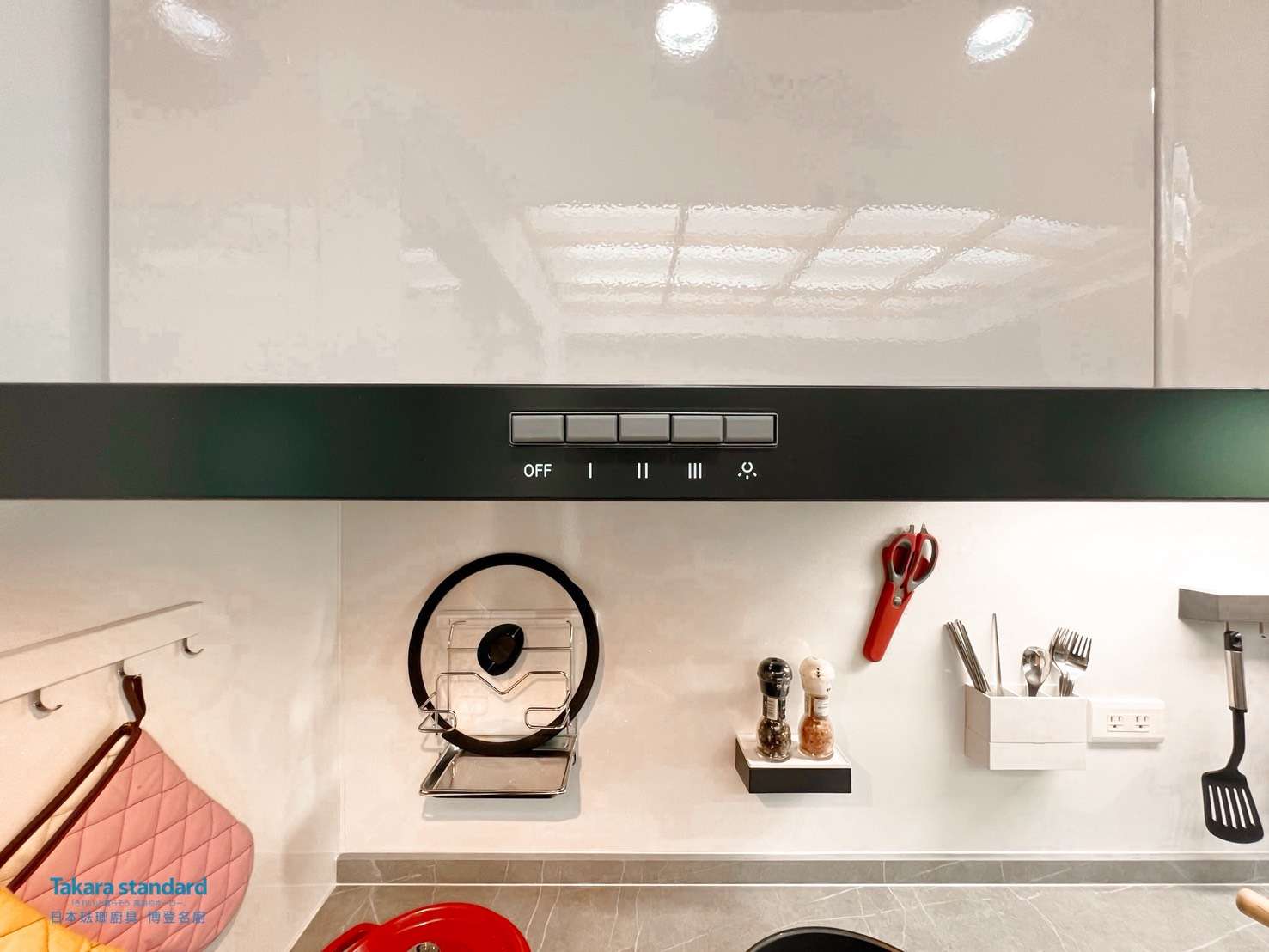 TAKARA琺瑯壁板也是TAKARA琺瑯廚具選配中必選之一,廚房中腰以及爐具的側面與正面都是直接接觸油煙的地方本身,琺瑯壁板也有著跟一樣好擦拭、好整理、好耐用的特性,加上可以吸附配件,要擦拭直接取下即可。