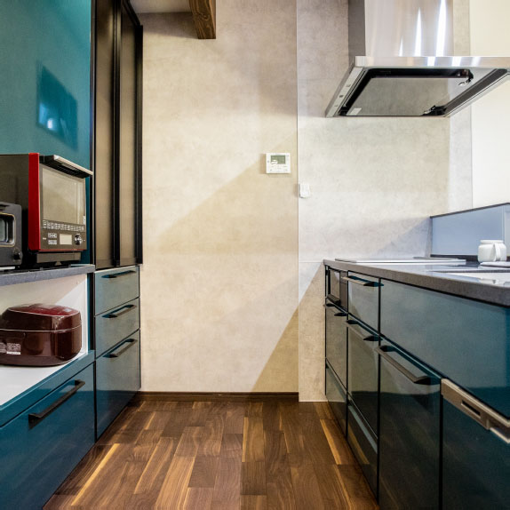 亮度適中、沉穩而有氣質,搭配後方同色系的電器櫃,讓整個廚房呈現一致而舒服的氛圍,