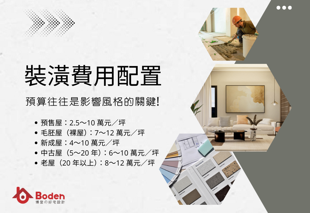 不同風格對建材的需求也不同,例如偏向工業風的鐵件、清水模,或是日系簡約常見的淺色木皮,都會影響報價。 以下是常見的參考區間: