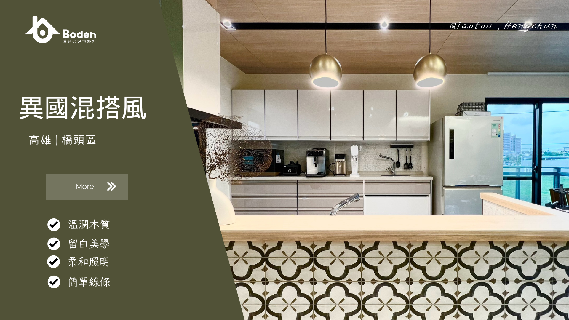 適合族群: 喜歡在日常裡融入異國風情,但又希望維持實用耐用的屋主,尤其是愛好料理與家庭聚會的人,這樣的廚房能兼顧氛圍與機能。