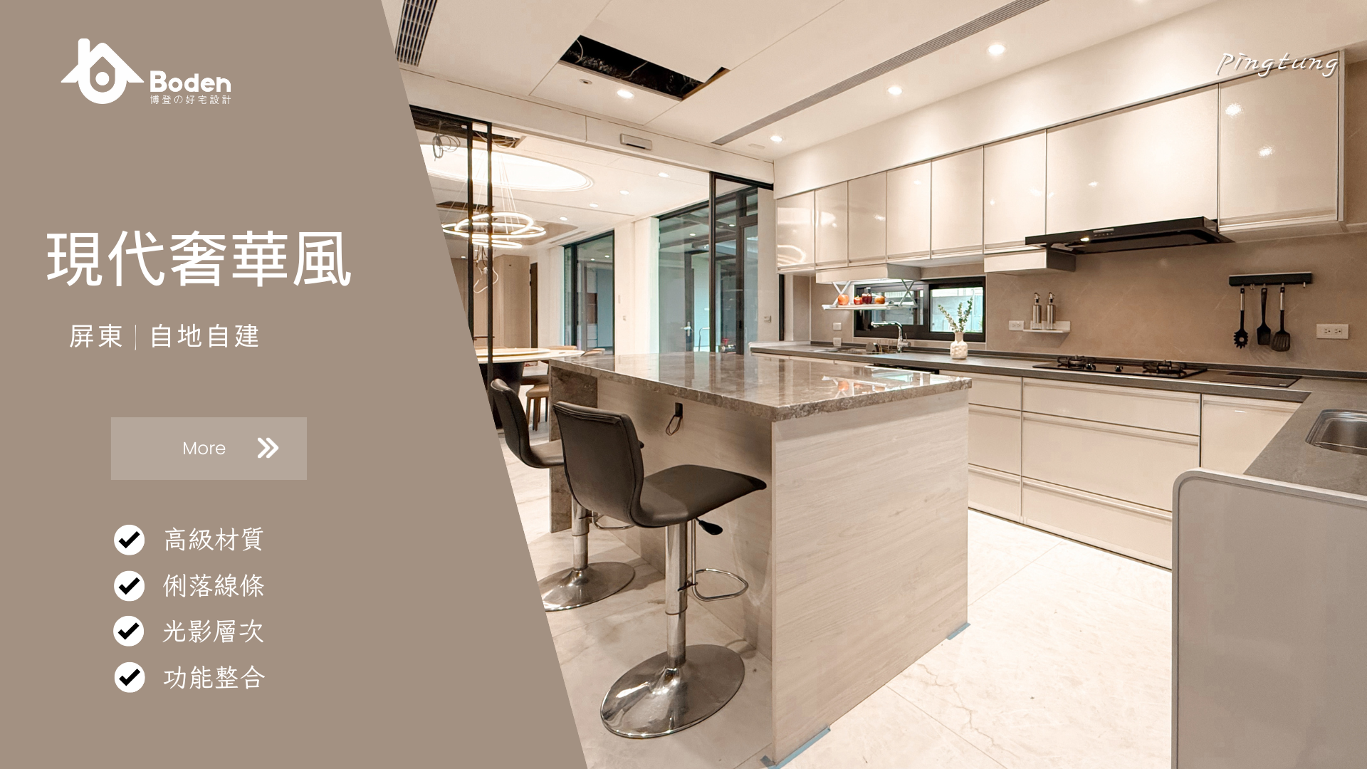 同時兼顧隔音與油煙控制,這樣的現代奢華風,已成為許多新客戶參考的範例,也再次展現博登在自地自建市場的專業實力。