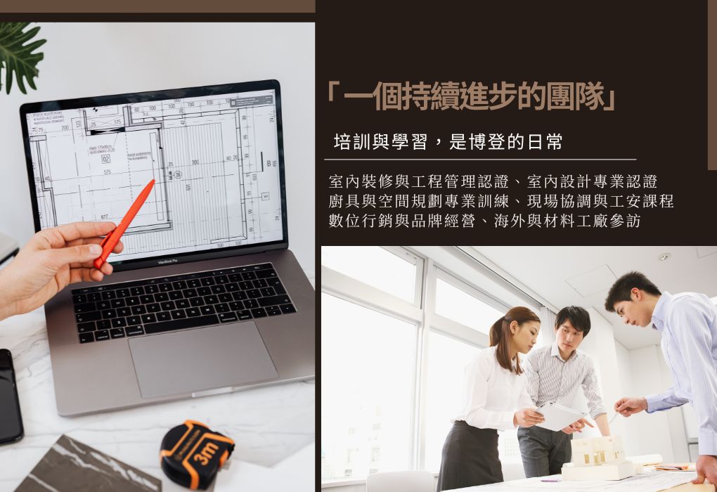 合作工班涵蓋泥作、地坪、木工、水電、油漆等多類別,由博登統籌協調,讓業主不需自己奔走、溝通或監工,