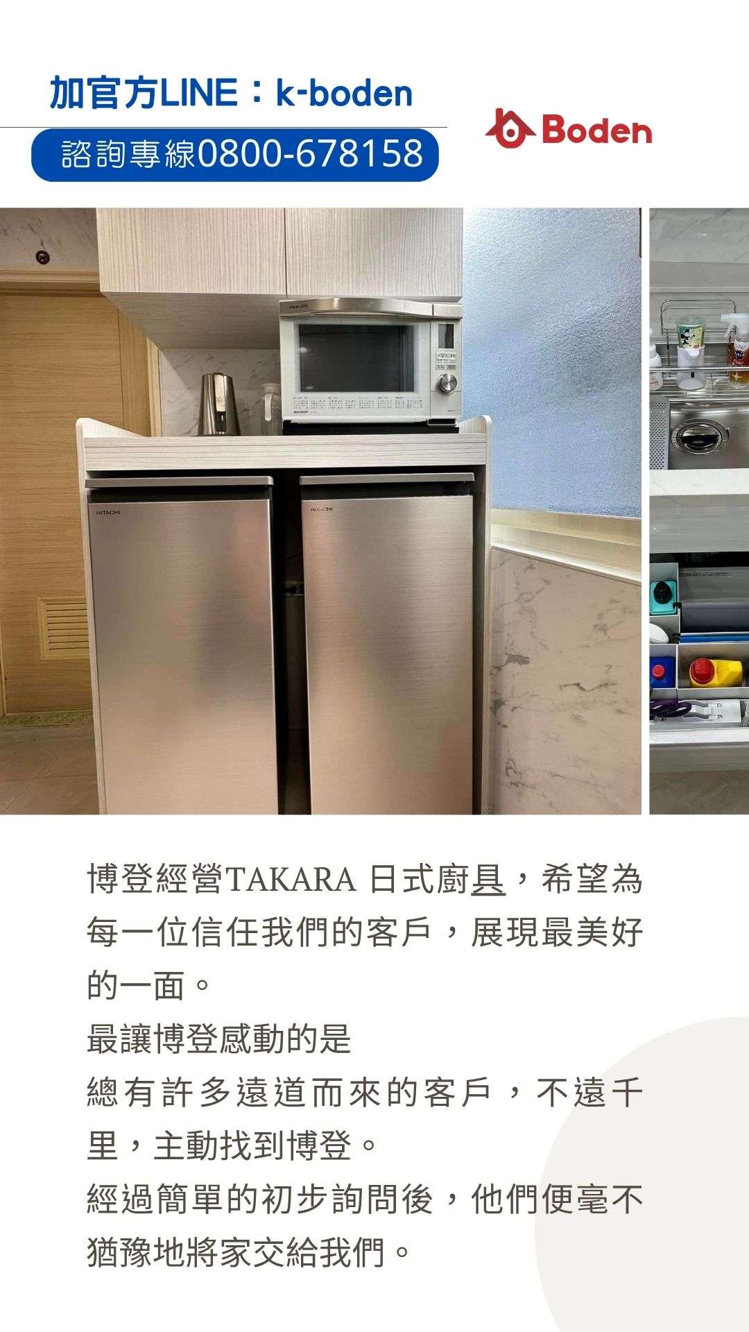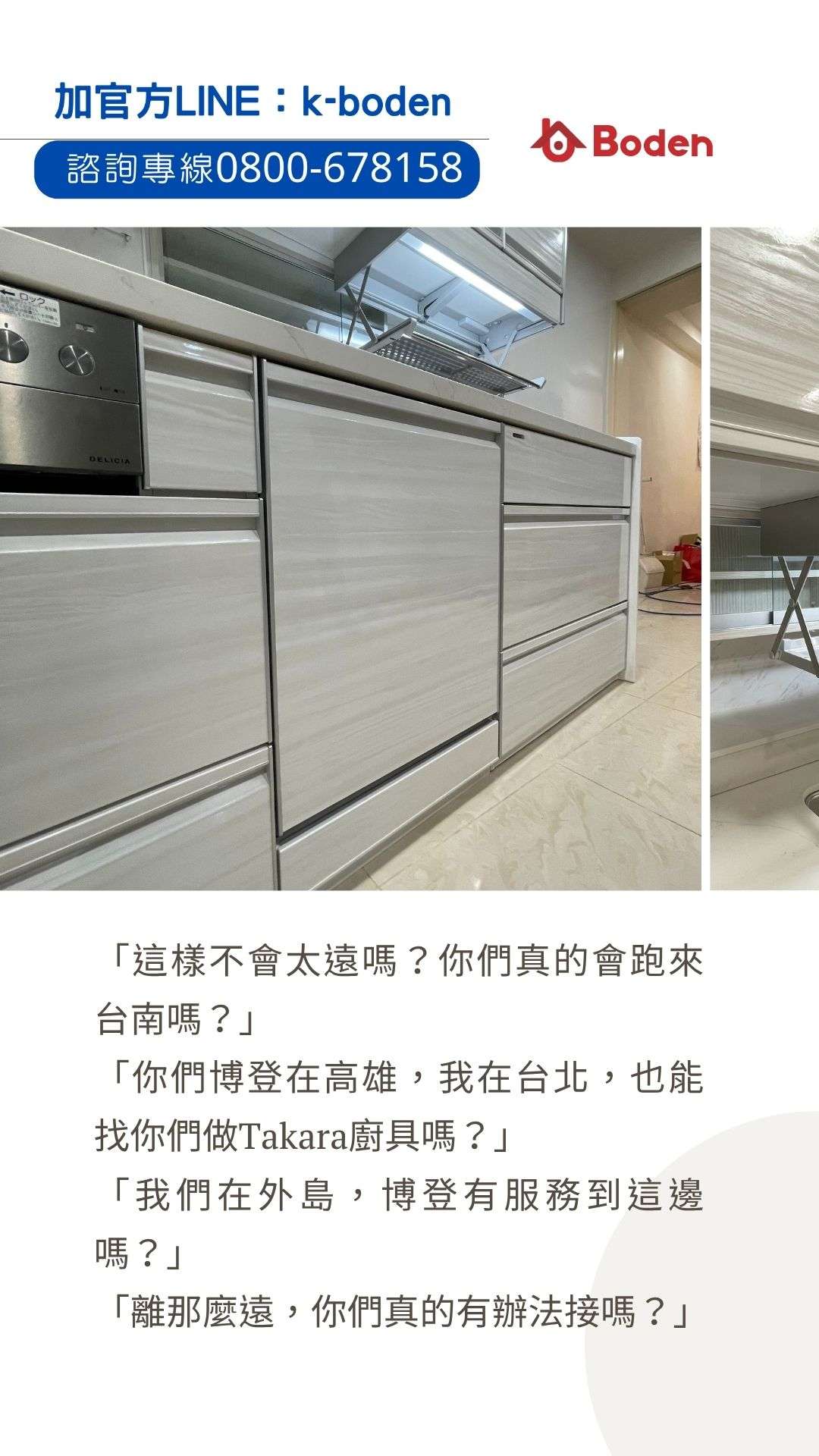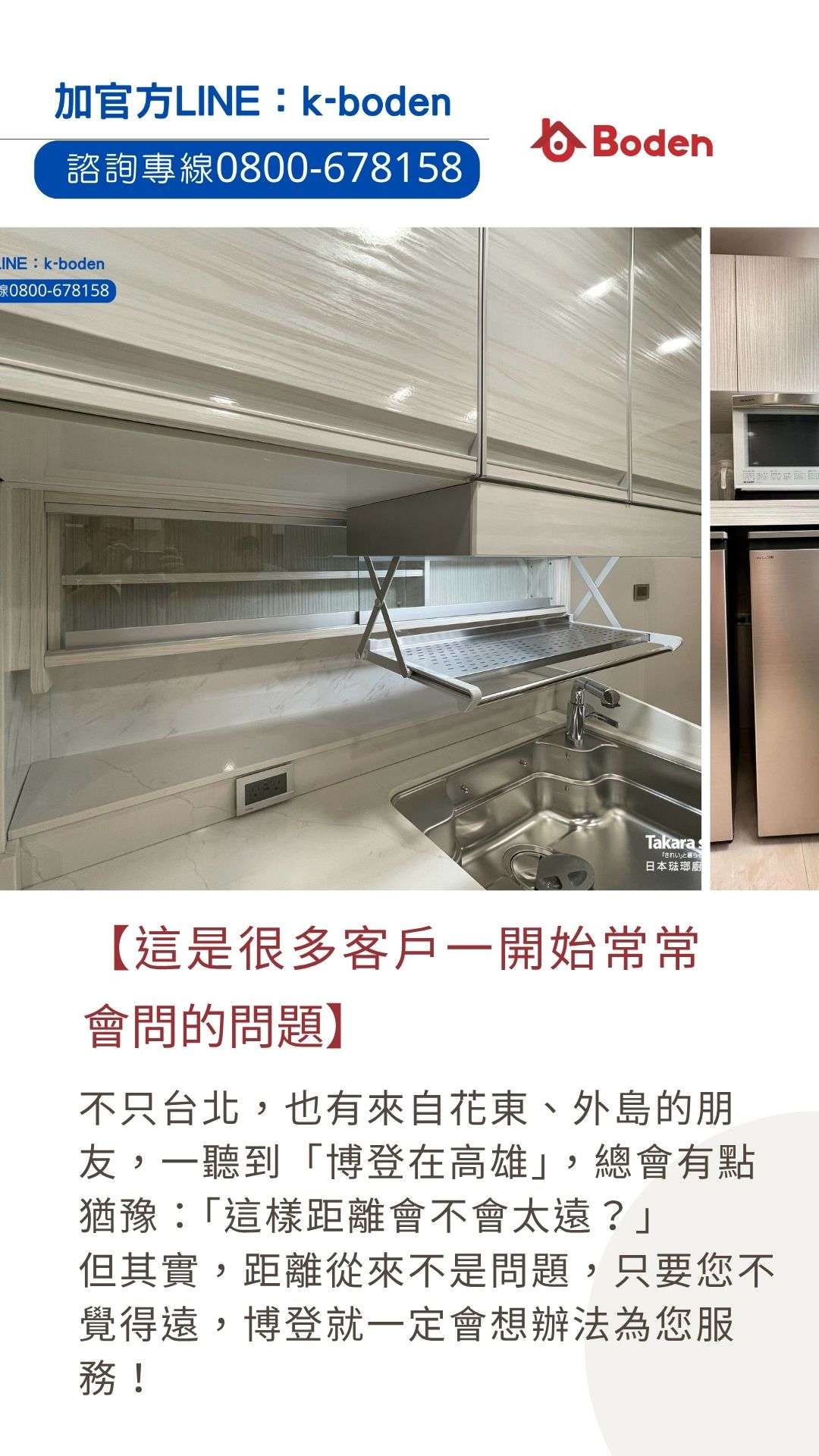 「你們博登在高雄,我在台北,也能找你們做Takara廚具嗎?」